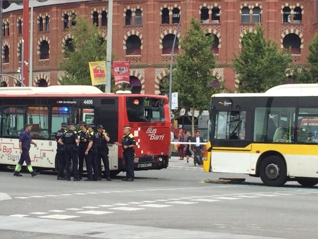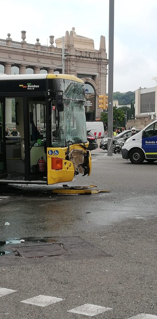 Un accidente multiple en Plaça Espanya, ha provocado 21 heridos leves en los cuales, la mayoría eran los pasajeros de ambos autobuses y una motorista que ha sido la de menor gravedad con una fractura en sus extremidades.