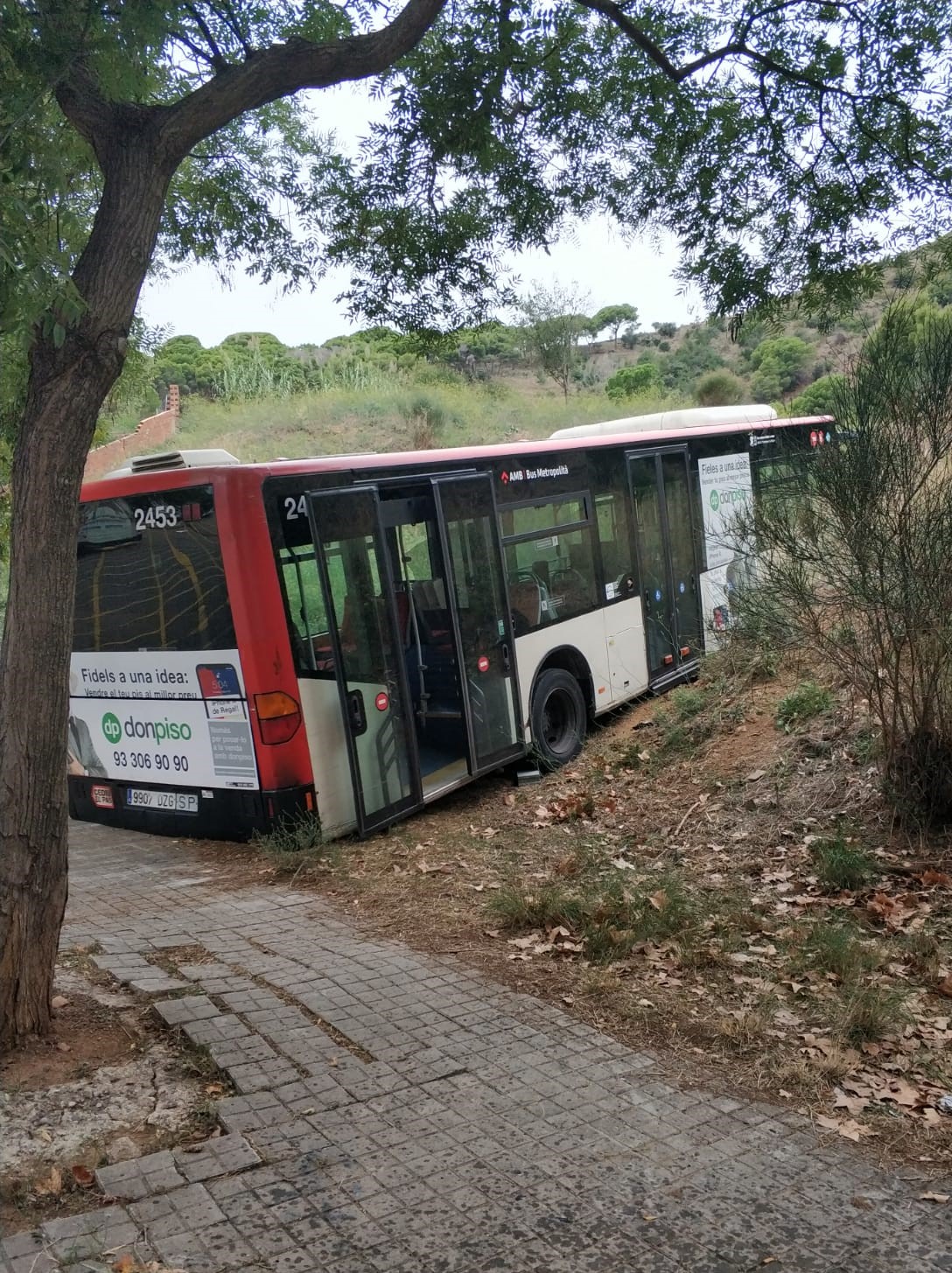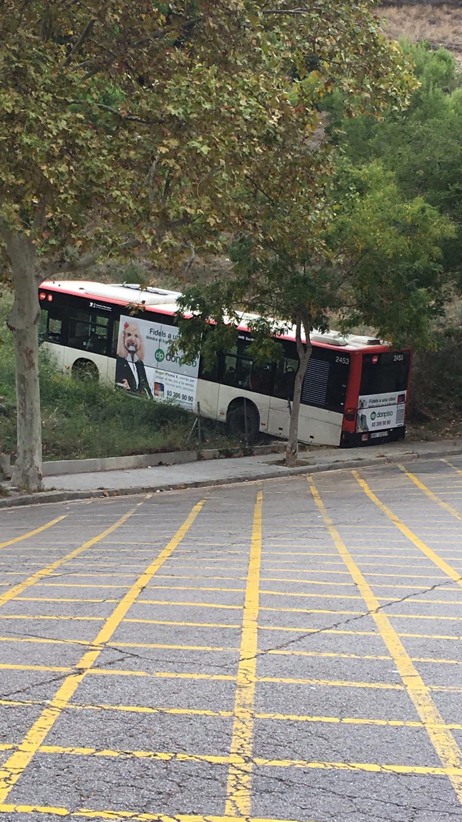 El coche 2453 de TMB, que realizaba la línea 19, ha tenido un «curioso» accidente. El vehiculo, realizaba la maniobra de cambio de sentido en la calle Natzaret, donde coinciden las líneas 19 y 76 en la maniobra. El conductor y para evitar un accidente de trafico con un turismo, realizó una maniobra dejando así el autobús.