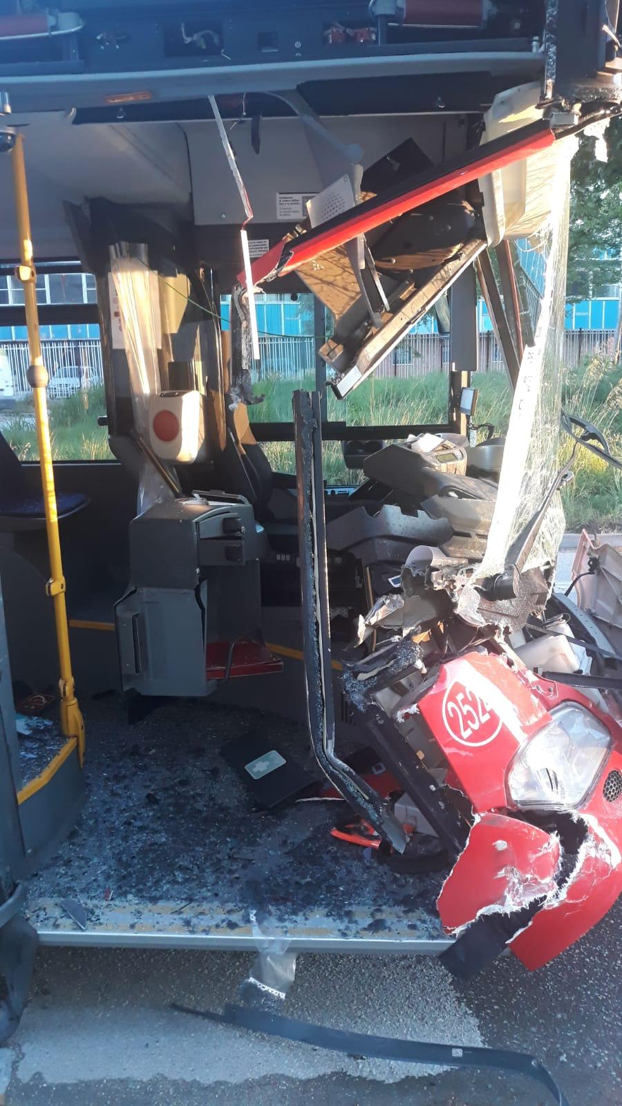 El conductor del autobús, no ha resultado herido pero han habido importantes daños materiales en el bus y en el remolque. Tal como se pueden apreciarse en estas imágenes: