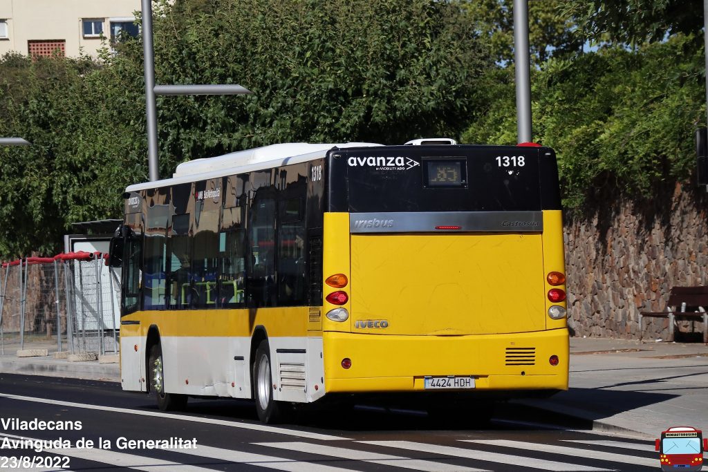 Vemos las unidades 1318, 1323 y 1329 al poco de ser recepcionadas en Avanza Baix. Donde se le ha reinstalado las validadoras, añadido los logotipos de Avanza correspondientes, retirar parte de la publicidad que llevaba en Baixbus Mohn, añadido pantallas de información al usuario y cámaras de videovigilancia HikVision.Las unidades adquiridas han sido los 1316, 1318, 1319, 1323, 1327, 1329 y 1339 para los Irisbus y 1336, para el MAN. Vemos la unidad 1318, que ha sido el primer bus en salir a servicio comercial a la línea L99.Vista posterior del coche 1318. Observen que no le funciona el letrero trasero de línea y los restos de haber llevado publicidad durante un largo periodo de tiempo.