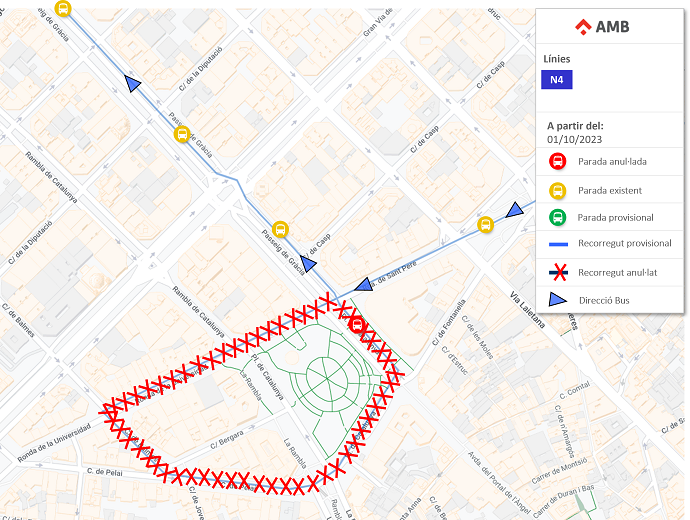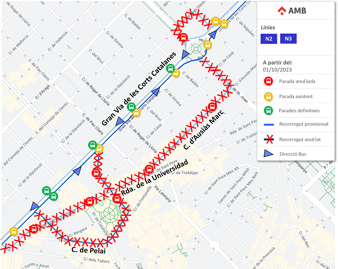 Días antes, ya se modificó el recorrido de la línea nocturna N1 dejando de pasar por Plaça Catalunya y se cambió levemente el final de la línea N9 de Plaça Catalunya.