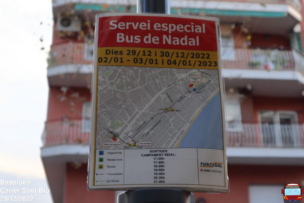 El servicio, es totalmente gratuito y para ello, Tusgsal ha asignado el bus 686 decorado especialmente para el servicio. El letrero de línea muestra el letrero «Bus de nadal», «Fàbrica de Joguines» y «Campament Reial». Saludos al conductor por facilitar la imagen.