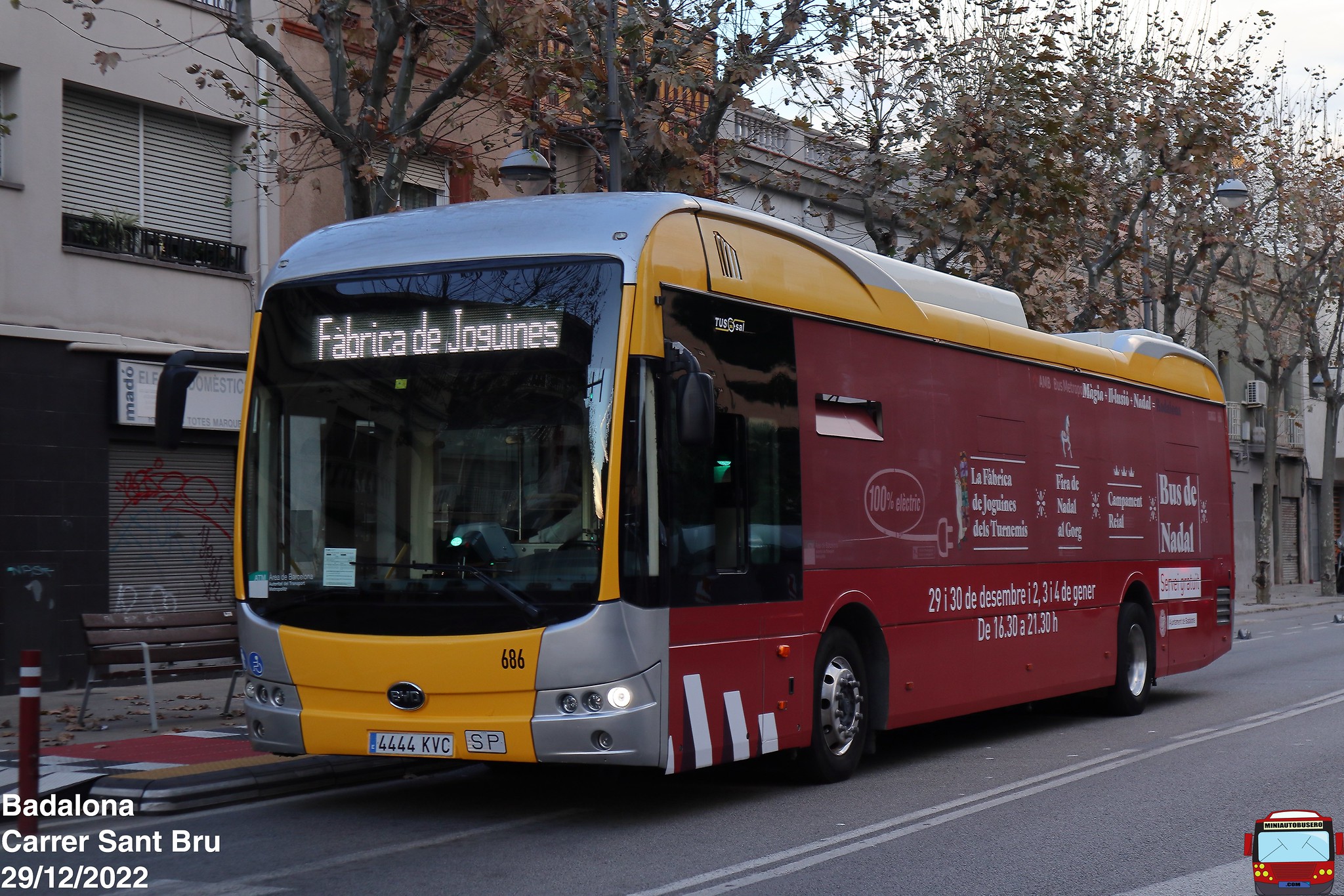 El servicio, es totalmente gratuito y para ello, Tusgsal ha asignado el bus 686 decorado especialmente para el servicio. El letrero de línea muestra el letrero «Bus de nadal», «Fàbrica de Joguines» y «Campament Reial». Saludos al conductor por facilitar la imagen.
