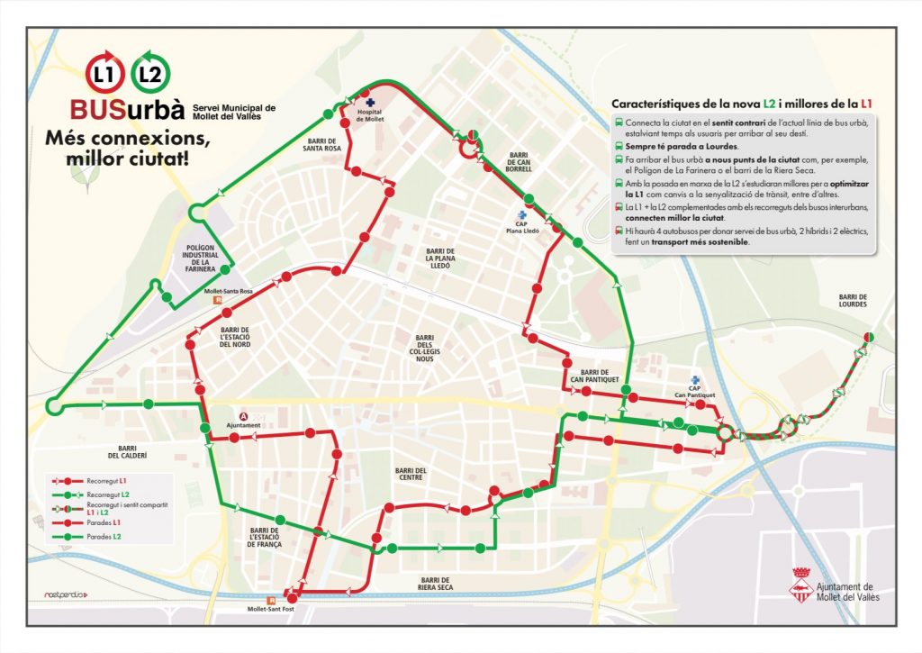 Plano de las líneas L1 y L2. Fuente Ayuntamiento de Mollet del Vallès.