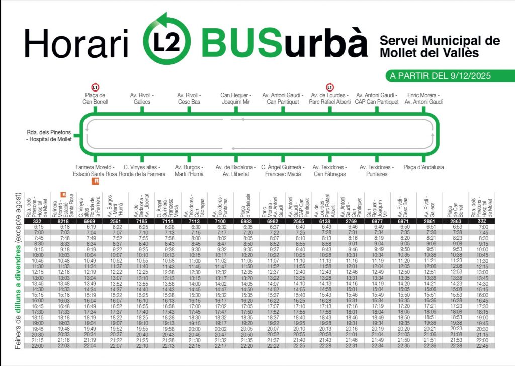 A partir del día 9 de diciembre, se pondrá en marcha la segunda línea urbana de Mollet del Vallès y que ha sido largamente reivindicada por plataformas municipales como MolletOpina.