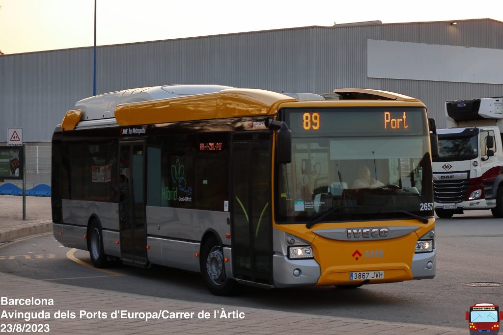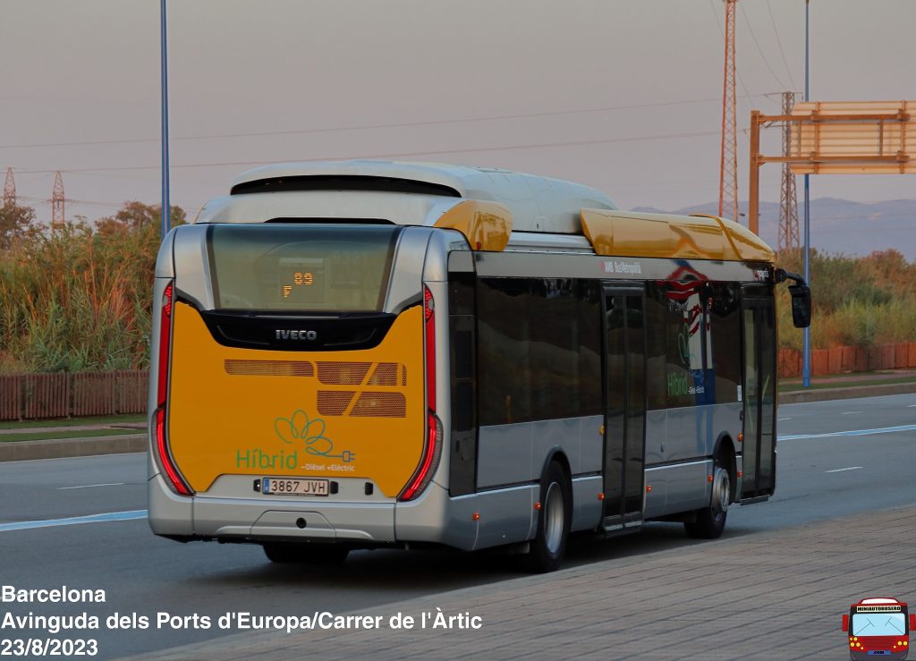 Otras de las unidades asignadas a estos nuevos servicios, son los Iveco Urbanway 12 Hybrid. Estas unidades, proceden también de la EMT de Madrid y que han circulado también en el Vallès Occidental y en Francia bajo la marca comercial de Pays de Grasse. En esta foto, el coche 2657 recién pintado.