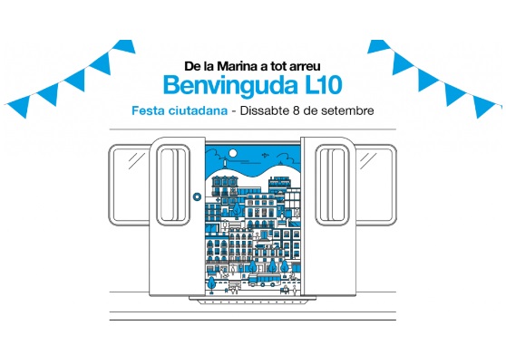 Tambien ya se puede ver algunos anuncios de «Benvinguda L10» por todo el barrio de La Marina y proximamente por toda la red del metro.