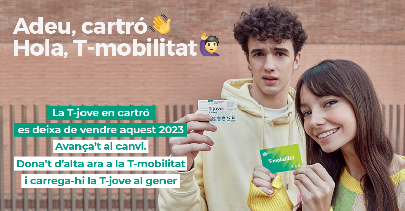 Desde el 16 de diciembre y durante las próximas semanas, la ATM y las principales operadoras de transporte público han anunciado una nueva campaña publicitaria del fin de la venta de la T-Jove en el soporte de cartón, haciéndolo solo por la T-Mobilitat y siendo el primer título en jubilar el cartón.