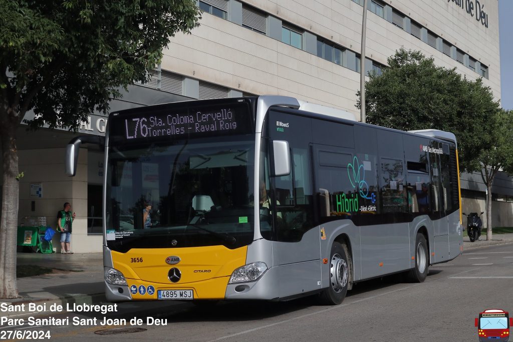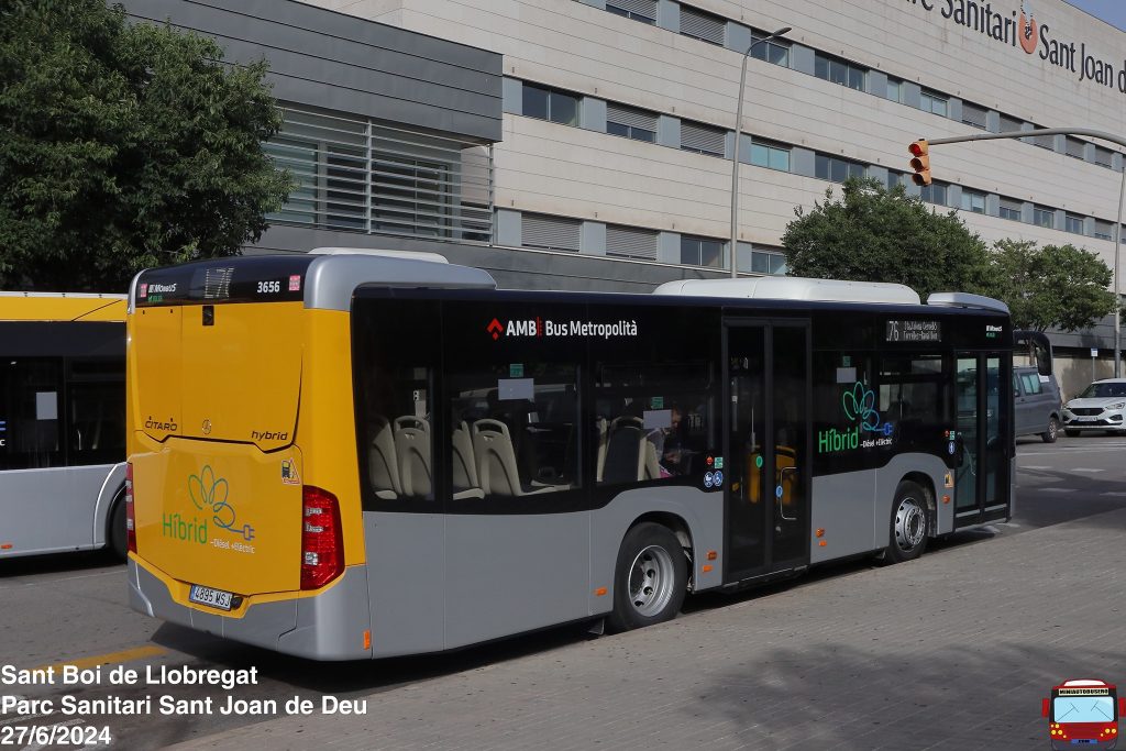 También, hay 3 Citaros C2K Hybrid que ostentan las calcas 3624, 3626 y 3656. Los tres han ido asignados principalmente a la línea L76 y con ello, se suplen los Citaros C2K que llegaron a la UTE para cubrir en su momento, un Mercedes Citaro K que sufrió un incendio y averías graves de coches heredados de Baixbus. Vemos aquí el coche 3656