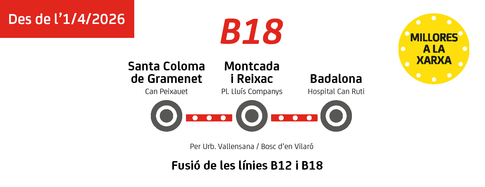 A partir del próximo día 1 de abril, las líneas B12 y B18 operadas por Direxis Tusgsal, se fusionan en una única línea B18 que realizará el recorrido entre Can Peixauet y el Hospital de Can Ruti pasando por Montcada i Reixac y por la urbanización La Vallensana.