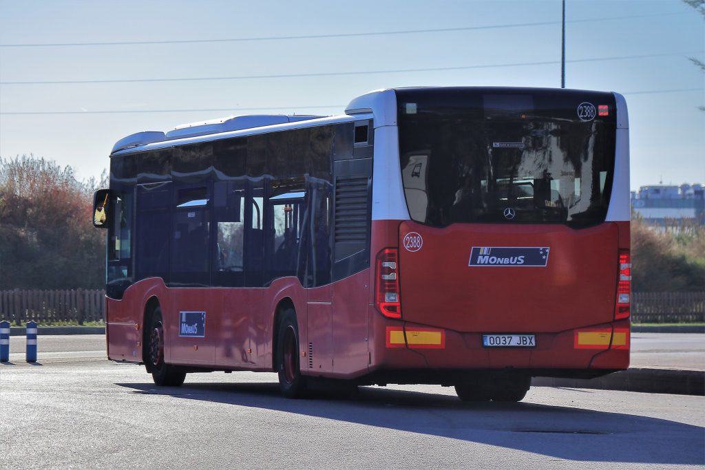 El vehículo ha sido el 2388 y mantiene el esquema de pintura que se usó en Alcalá, salvo que se le han retirado todos los logotipos y solo luce unos de Monbus por todo el coche y la calca.