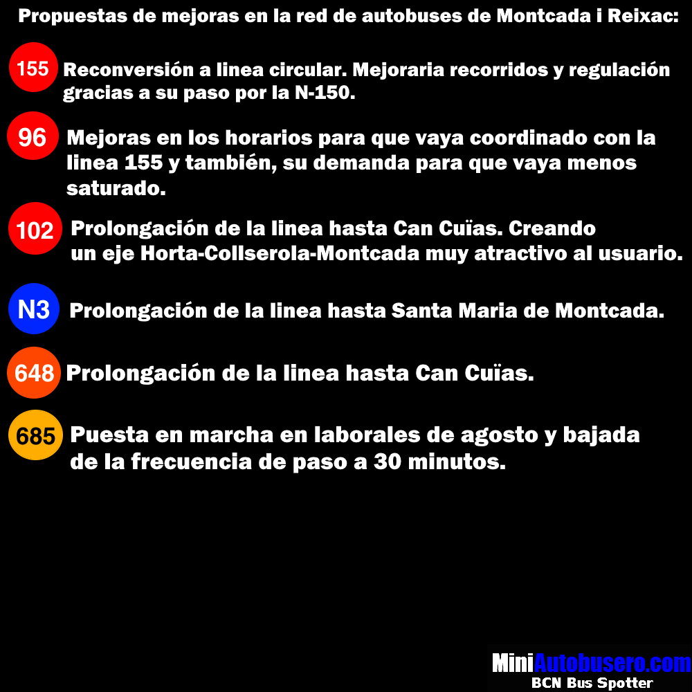 Las mejoras que propone el ayuntamiento y quieren enviarlo a TMB, AMB, Territori i Sostenibilitat y empresas operadoras fueras de la AMB són:
