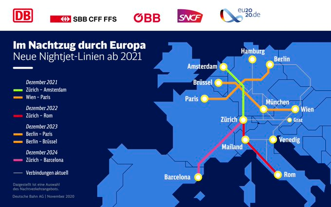 Tras el éxito que ha cosechado la ÖBB con el Nightjet, la principal apuesta es competir con el avión en trayectos de entre 500 y 1.500km. Reduciendo así, la contaminación y abriendo la puerta a que otras operadoras o con las que han formado la alianza, lancen otros proyectos con capital privado para lanzar otros proyectos. Como el «Lunajet», que permitiría conectar Barcelona con Fráncfort, entre otros.