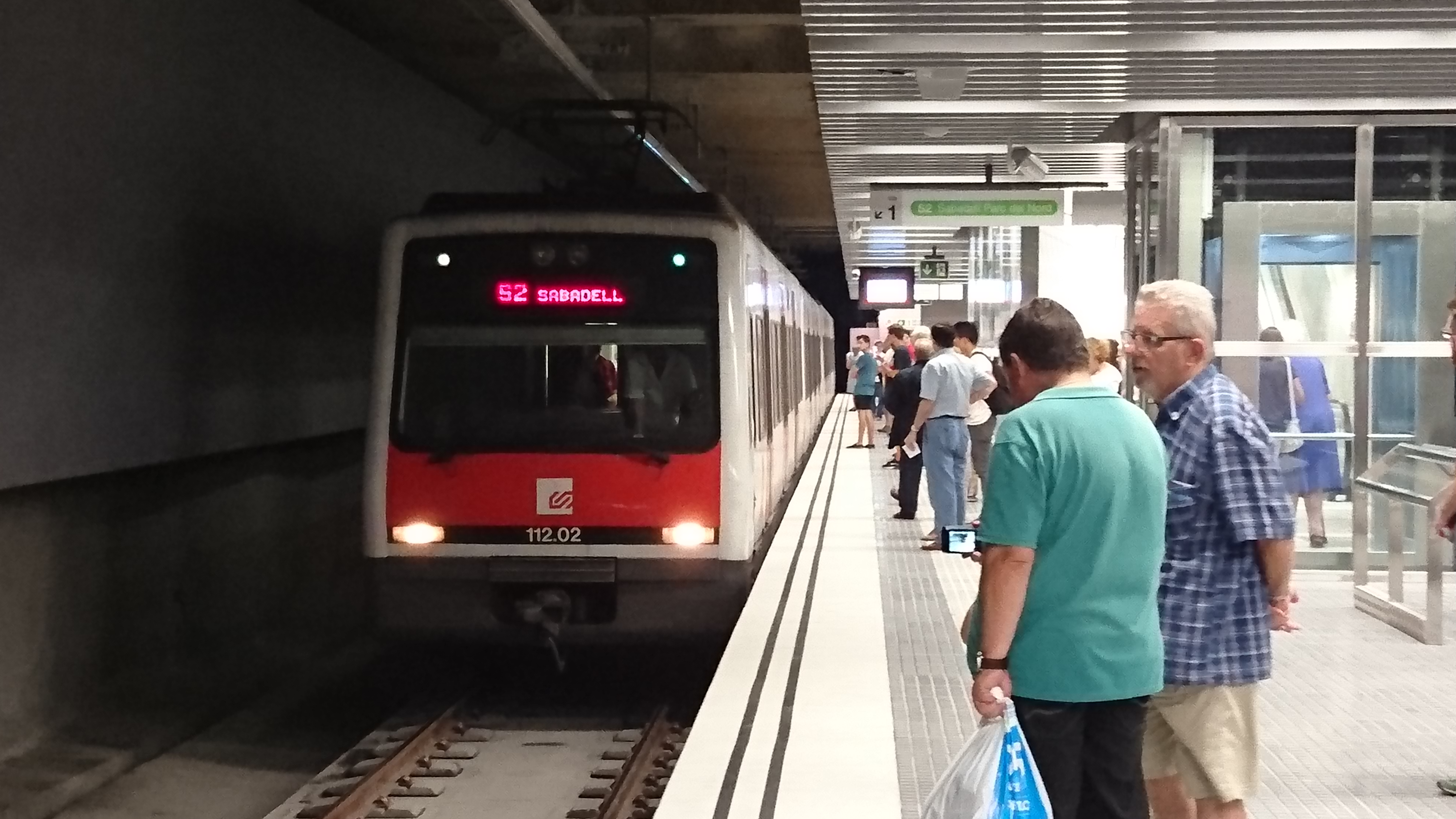 En la foto, el primer tren que entró a La Creu Alta con servicio comercial. Tuvo el honor de hacerlo la 112.02