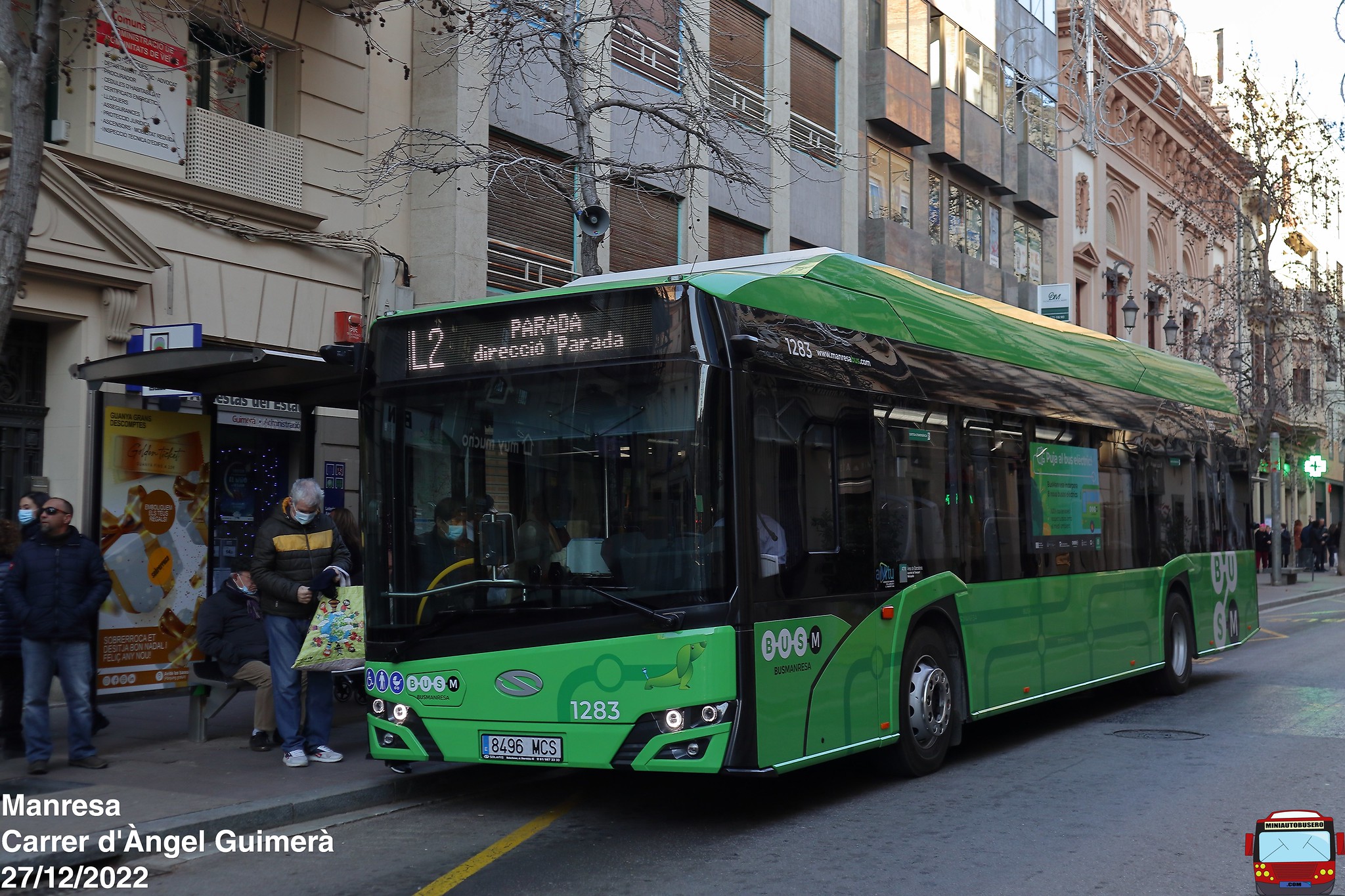 Vemos una de las primeras unidades en prestar servicio comercial en Bus Manresa realizando la línea L2.