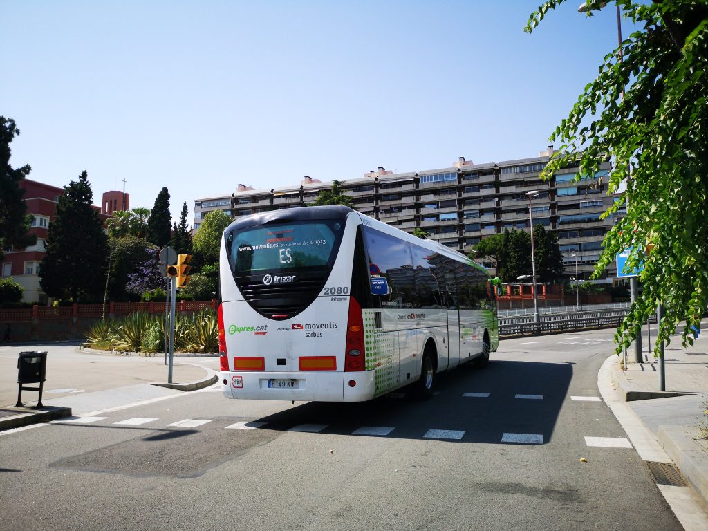 El 2080 en sus primeros servicios en la e2.2. En la imagen muestra los letreros de la web del grupo, cosa habitual de los conductores de la e2.2 cuando terminan de cargar en Barcelona.