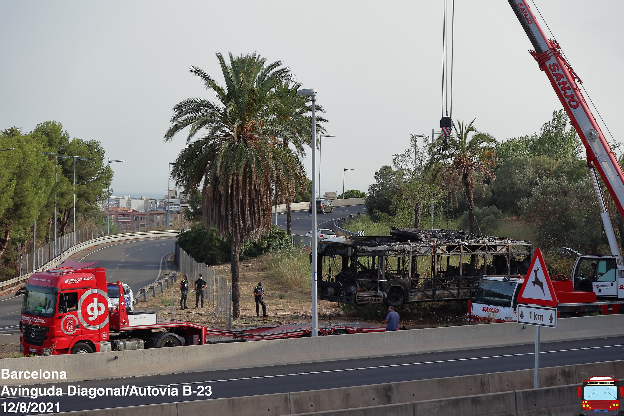 Un autobús de Baixbus Oliveras, se ha incendiado a la entrada de la Avinguda Diagonal de Barcelona mientras realizaba un servicio en la línea exprés E79 y con 22 pasajeros a bordo y el conductor.