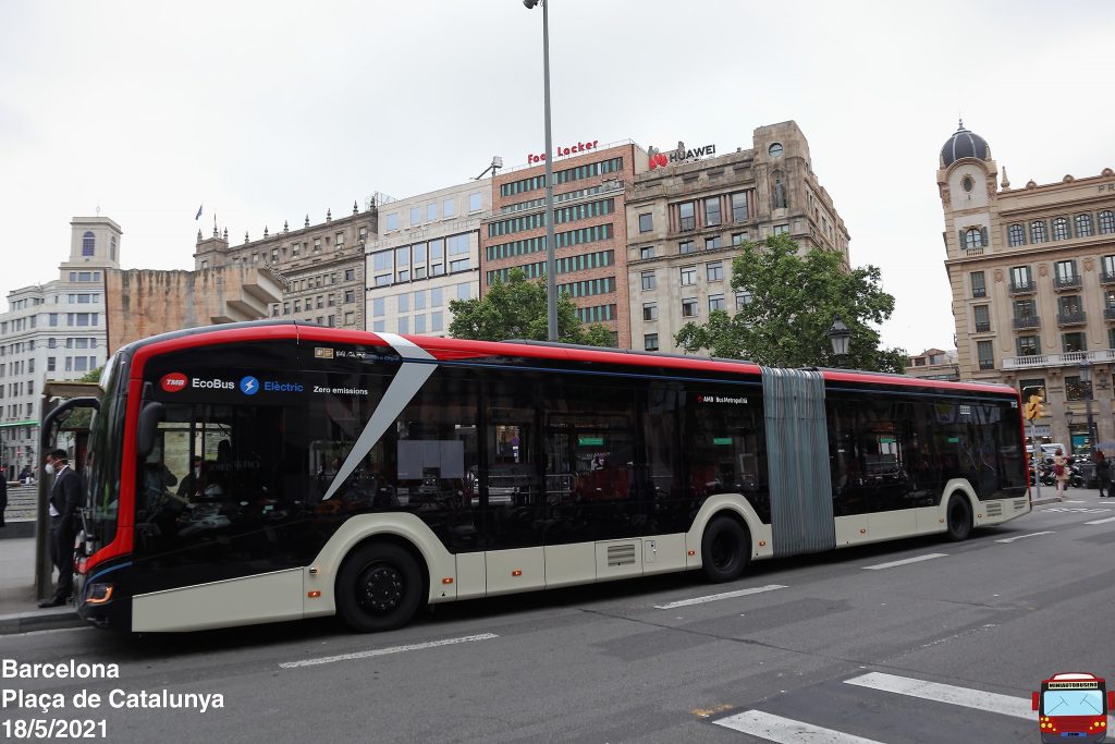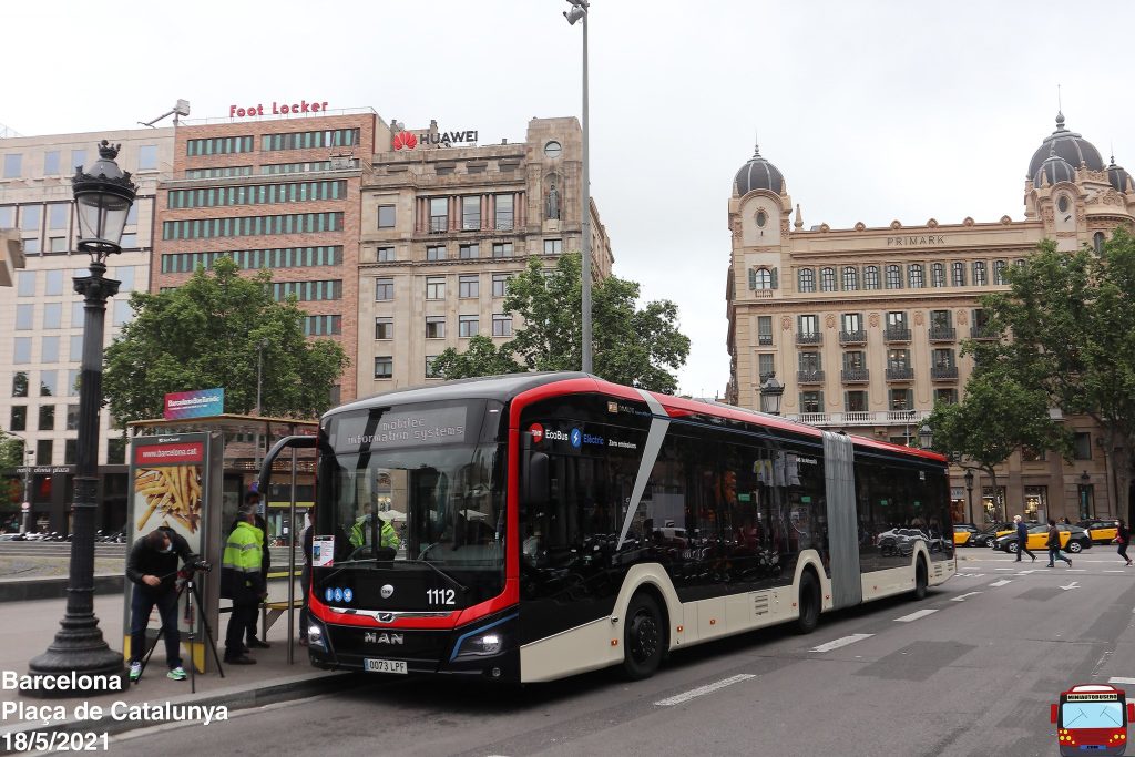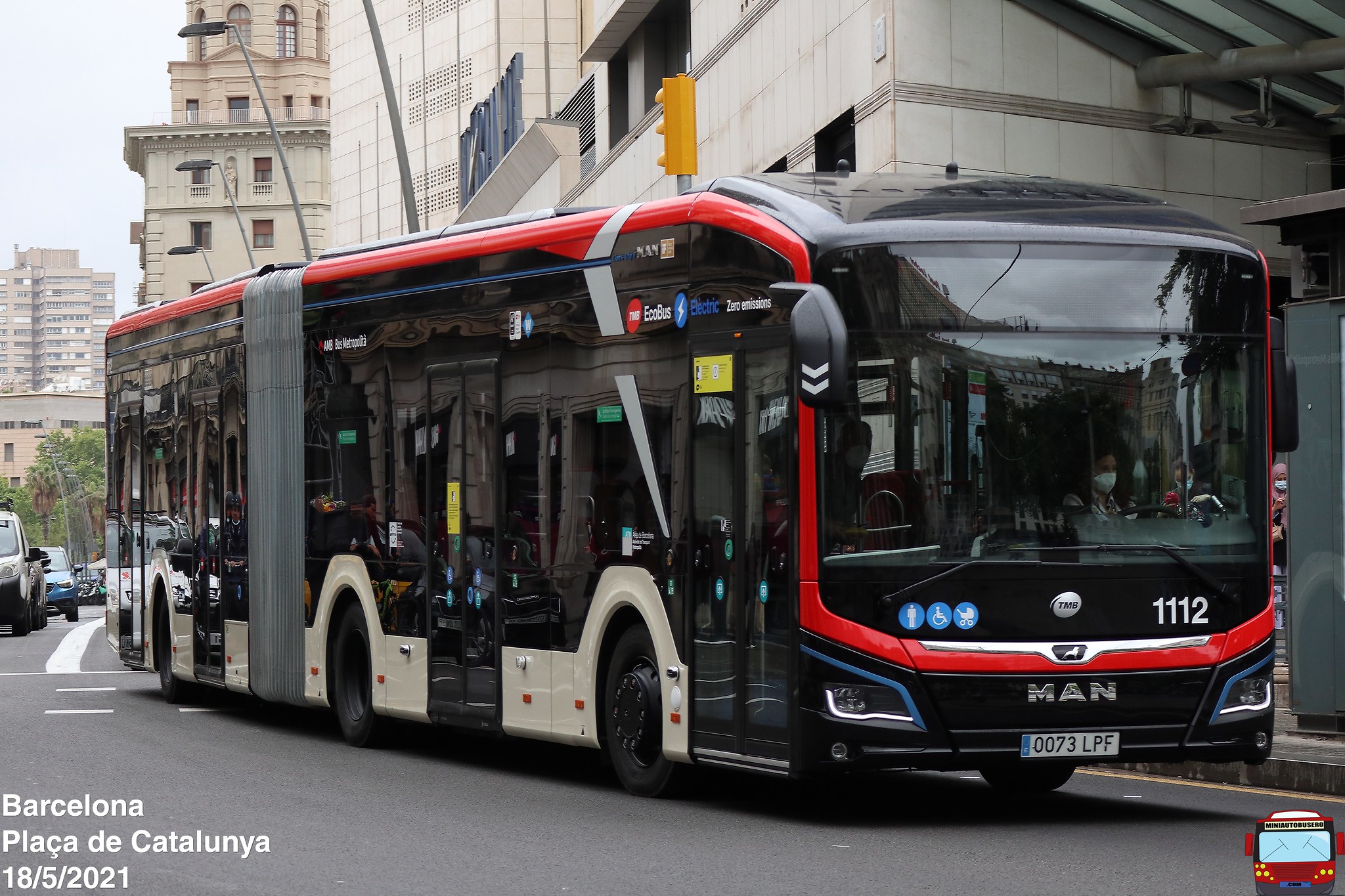 TMB ha presentado en la céntrica Plaça Catalunya, el nuevo autobús 100% eléctrico Man Lion’s City E Articulado y que ha recibido la calca 1112.
