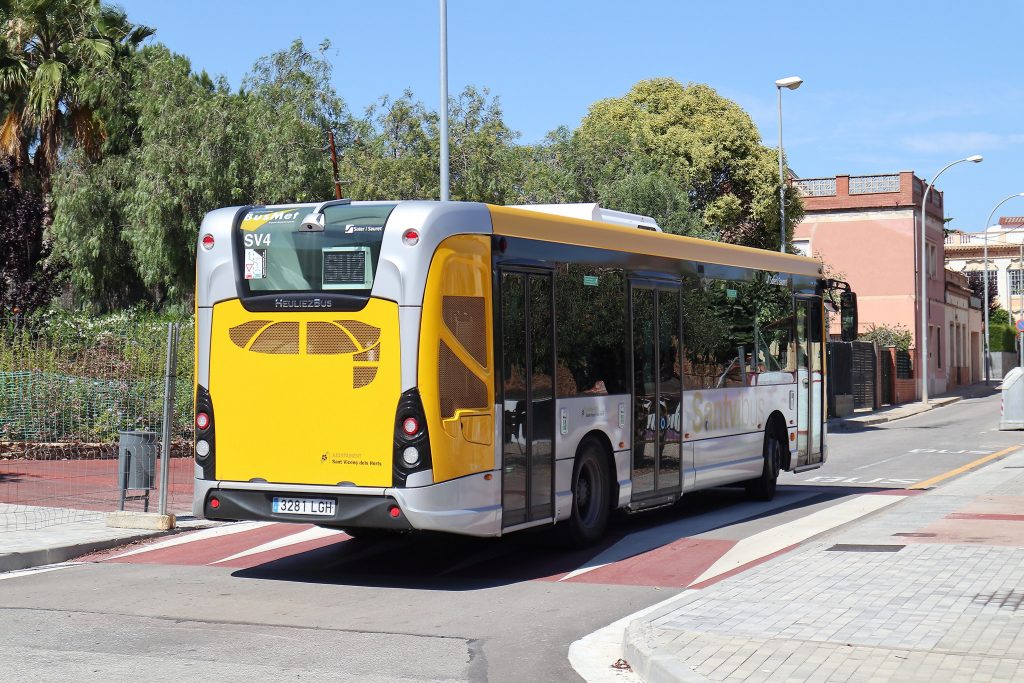 Los coches reciben nuevo esquema de pintura, que es el mismo para los servicios de la AMB, abriendo la puerta a ser traspasado próximamente. En la foto el SV4 realizando un servicio en la línea SV2.Vista lateral del vehiculo, donde la única diferencia con los servicios de la AMB, es la falta del logotipo del conscorcio y que lleve puestos los del Santvibus.Vista posterior del Heuliez GX137L