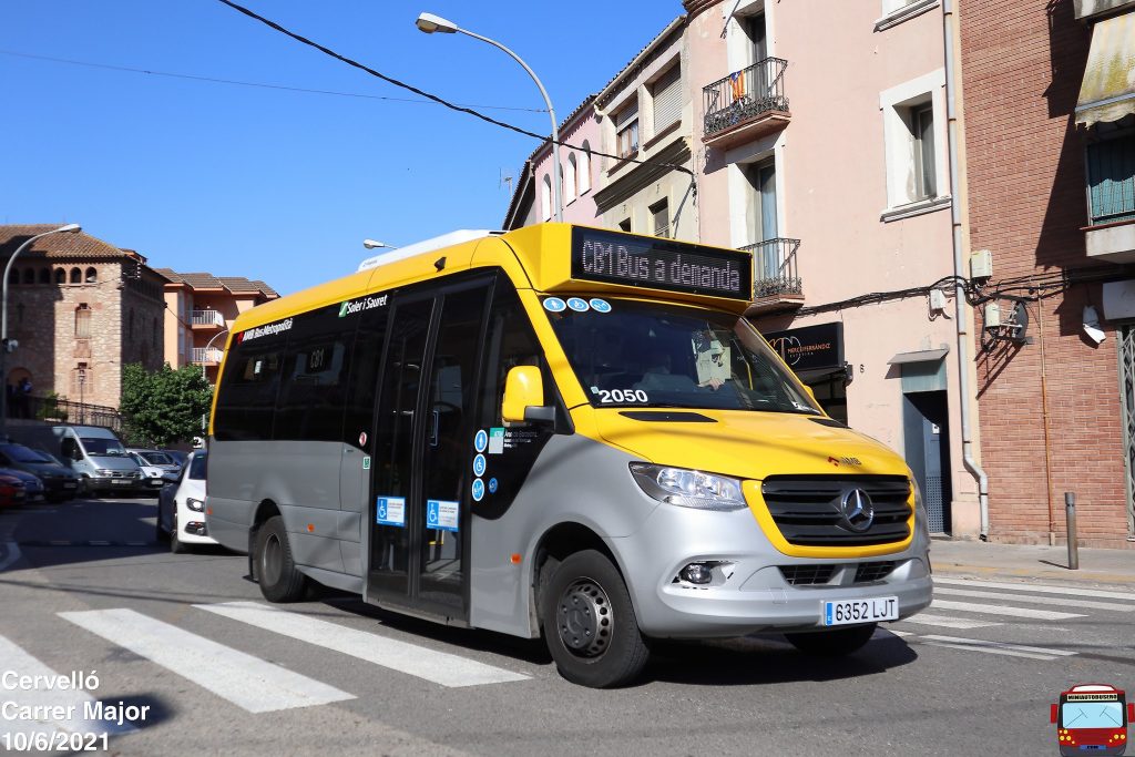 Los 2049 y 2050, corresponden a dos microbuses Mercedes. El primero es el antiguo CB3 y hasta antes de la entrada a la AMB, adscrito al urbano de Cervelló. En esta foto, el actual microbús adscrito al urbano de Cervelló, el CB4, ahora renumerado como 2050.