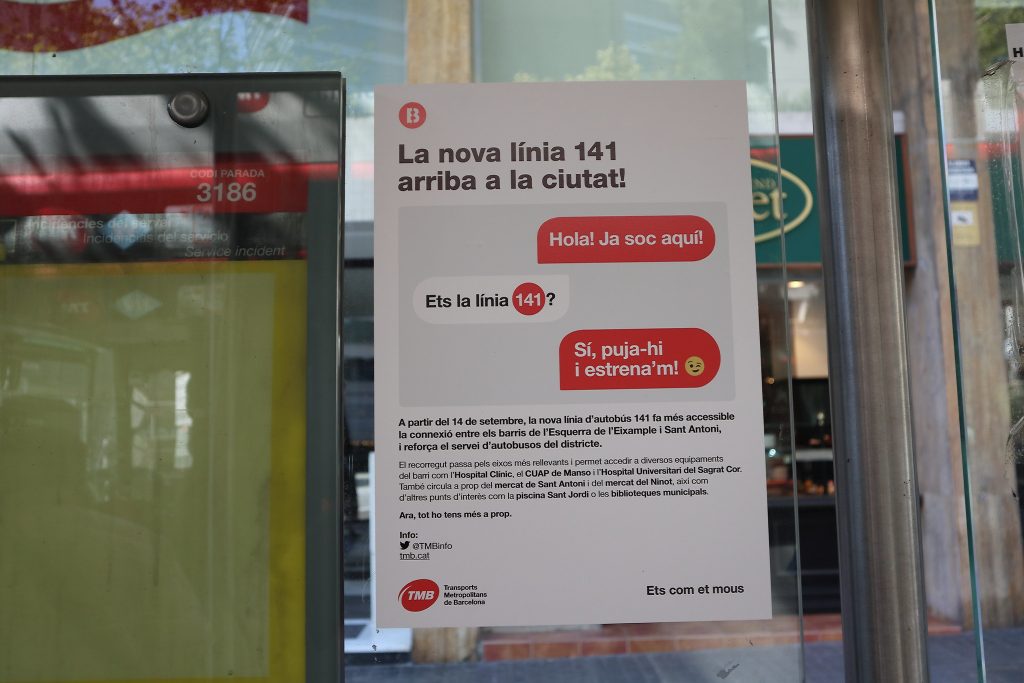 La primera linea es la 141, una linea que los vecinos de l’esquerra de l’eixample, lo han reivindicado desde la desaparición de la antigua 41 por la sustitución por la actual V9.