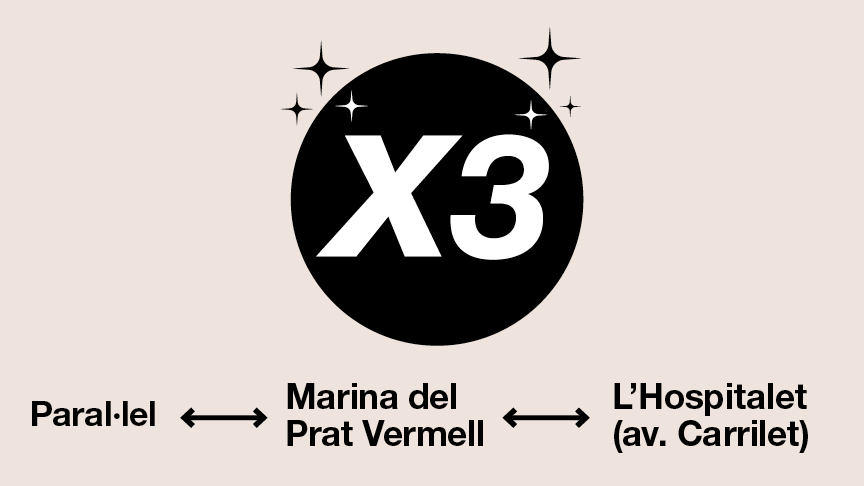 Tras el éxito de las líneas X1 y X2, TMB pondrá en marcha a partir del próximo día 26 de mayo, su tercera línea exprés de la red y que unos meses antes, el Ayuntamiento de Barcelona anunció la creación de una nueva línea exprés para mejorar la conectividad en los barrios de La Marina del Prat Vermell hasta que llegue la L2 del metro a Poble Sec, el Parc de Montjuïc, La Marina del Prat Vermell, Fira Gran Via y el Aeropuerto de El Prat.