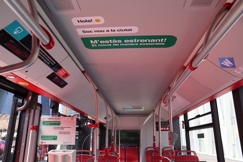 A todos los vehículos, se les ha añadido unos vinilos en el interior y exterior de estrena’m, añadiendo lujos como los enchufes para cargar el teléfono o otras novedades como mejor climatización del vehiculo.