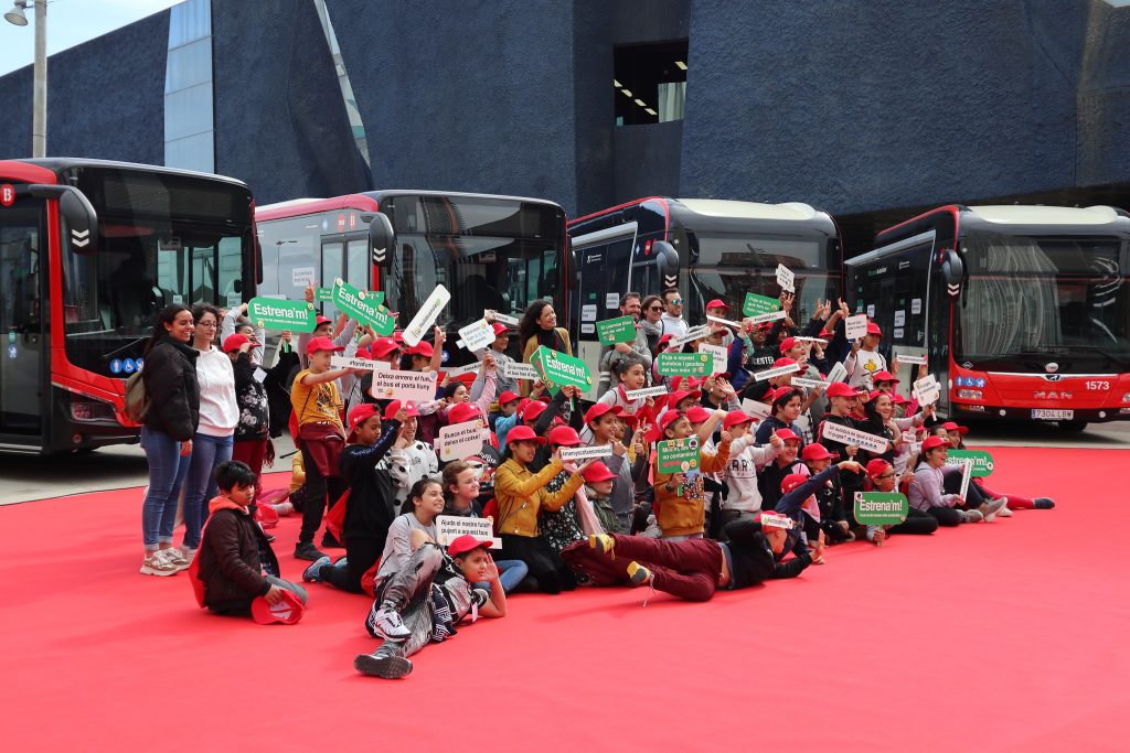 Antes que llegaran la alcaldesa Ada Colau, La presidenta de TMB Rosa Alarcón y el Conseller de Territori Damià Calvet, la escuela Joaquim Ruyra fueron los primeros en ver los nuevos vehículos y se realizó una actividad de TMB Educa.