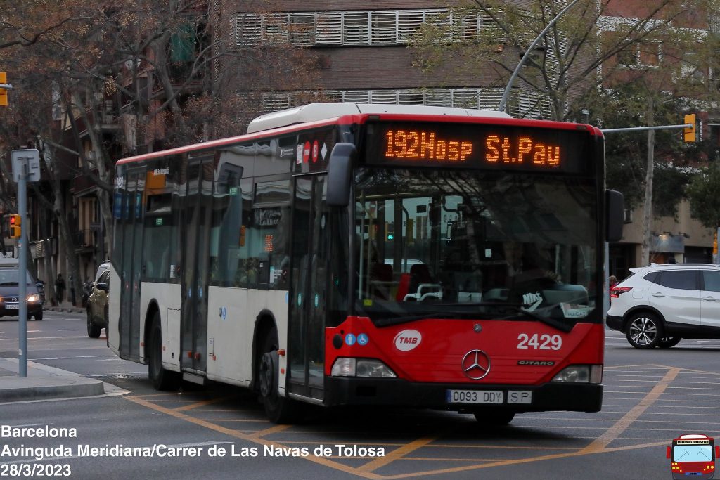 En su regreso a Horta, el 2429 ha ido asignado al turno 1 de la línea 192. Lo vemos atravesando la Avinguda Meridiana.Los Vectia Teris procedentes de Poniente, han ido asignados a las líneas 126 y 183. Vemos el 4451 cubriendo el turno 2 de la línea 126.La llegada de estos Volvos a Horta, vuelve a tensionar la falta de vehículos articulados en dicha cochera. Vemos el 5009 a cargo del turno 9 de la línea V21.