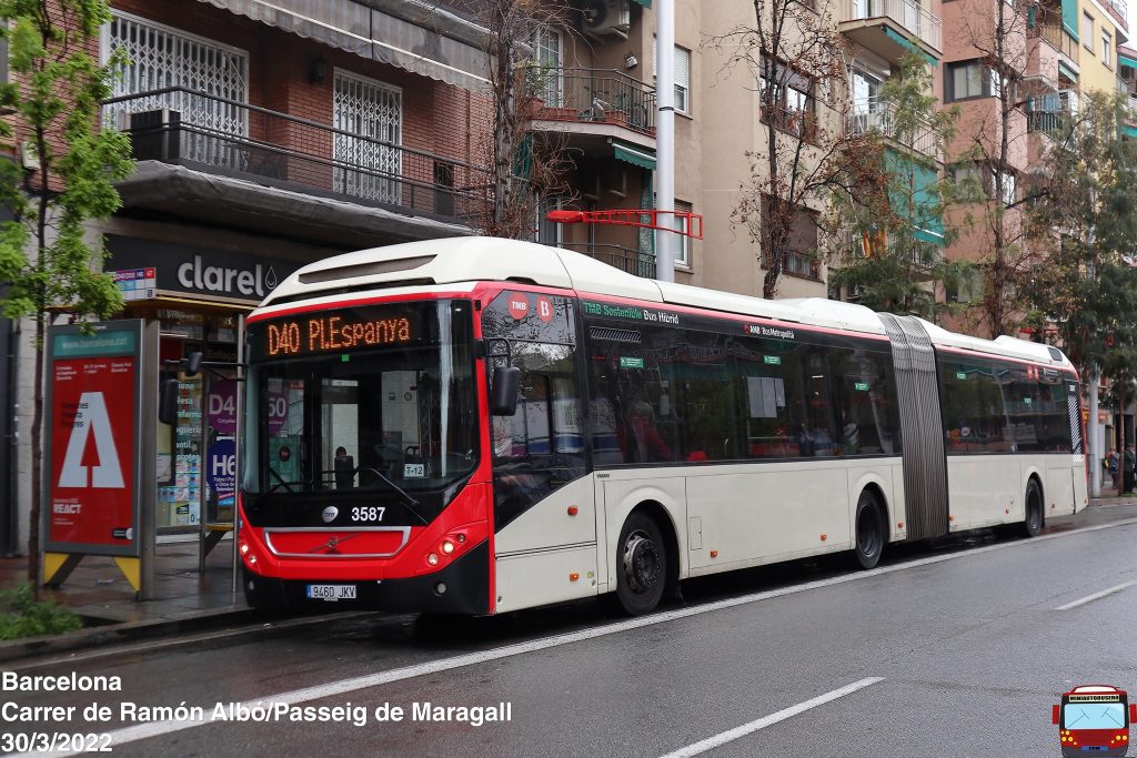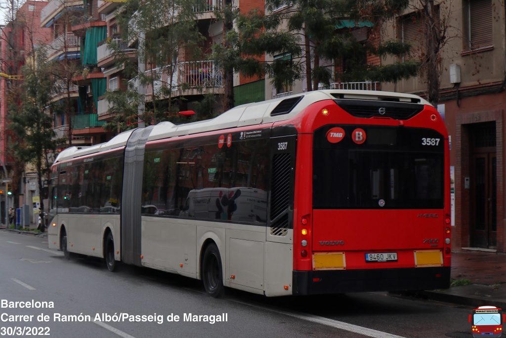 TMB ha recuperado del servicio, el coche 3587, un Volvo 7900 Hybrid Articulado asignado a las líneas de la cochera de Poniente tras dos años de ausencia.