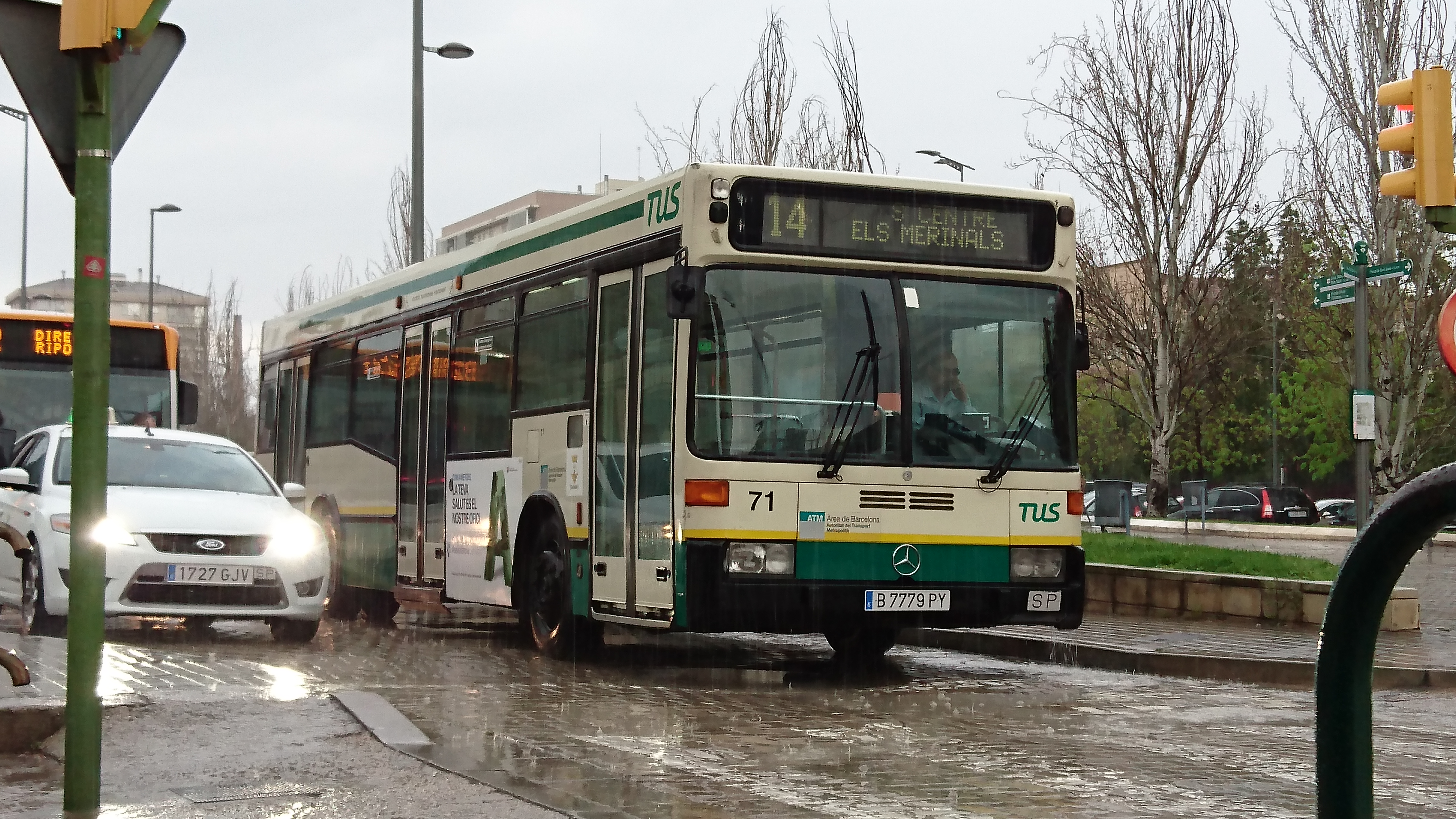 En la foto, el primer coche en realizar la línea L14, el coche 71, un Mercedes-Benz O405N2 con casi 21 años a sus espaldas.